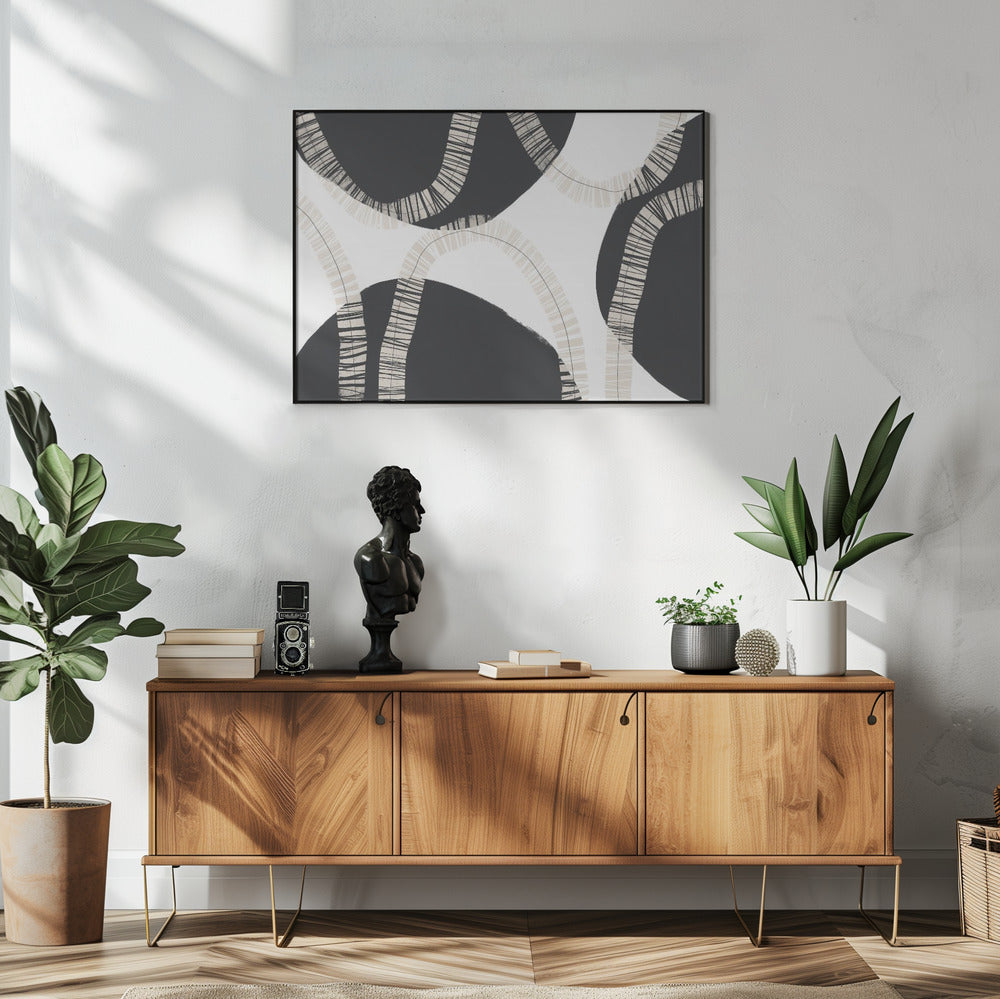 Black Shapes Interwoven With Textured | Poster