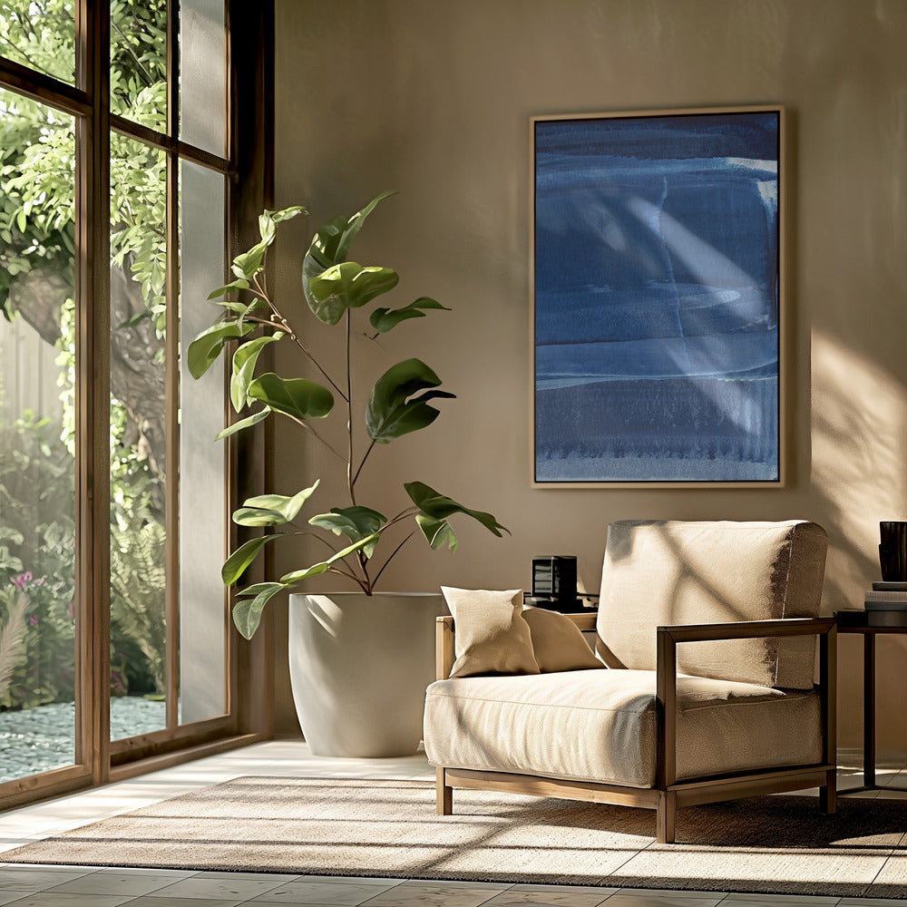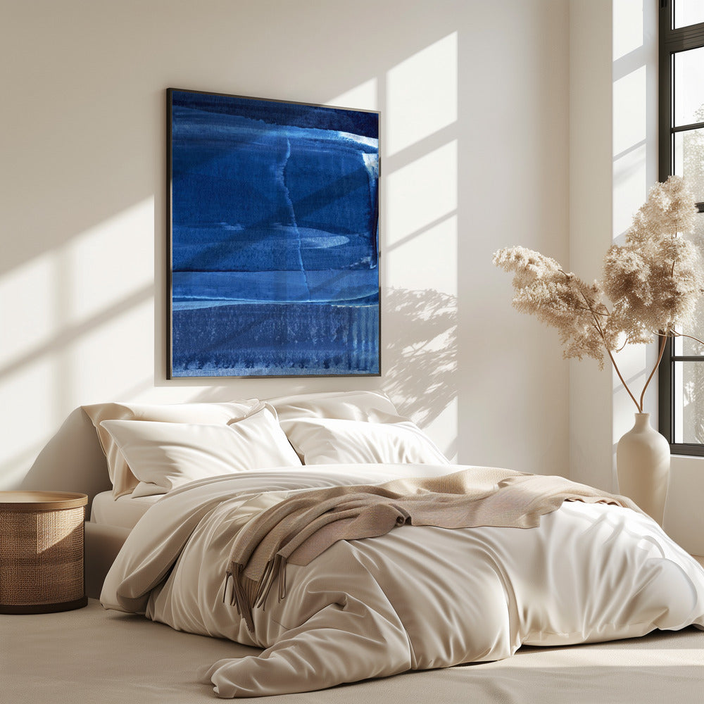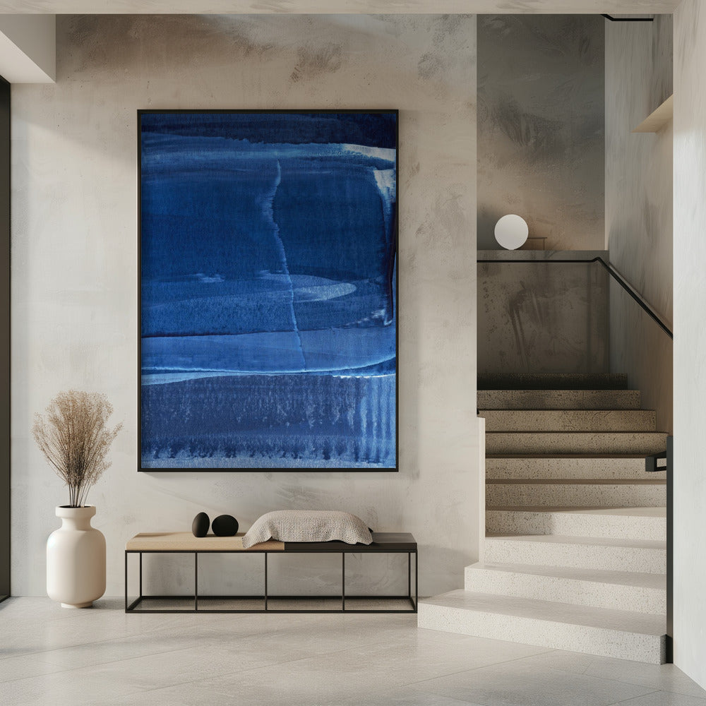 Blaue Textur mit fließenden vertikalen Linien | Poster