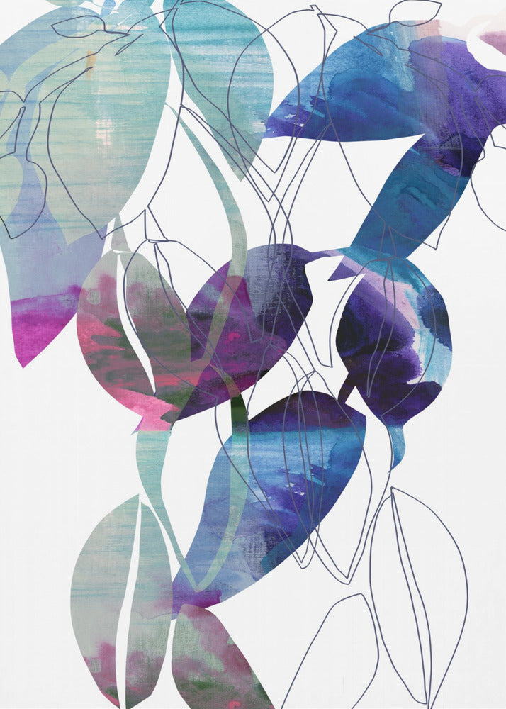 Botanische Blattdruckkunst in Marineblau 2 | Leinwand