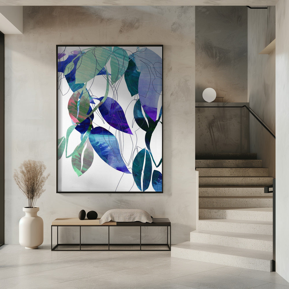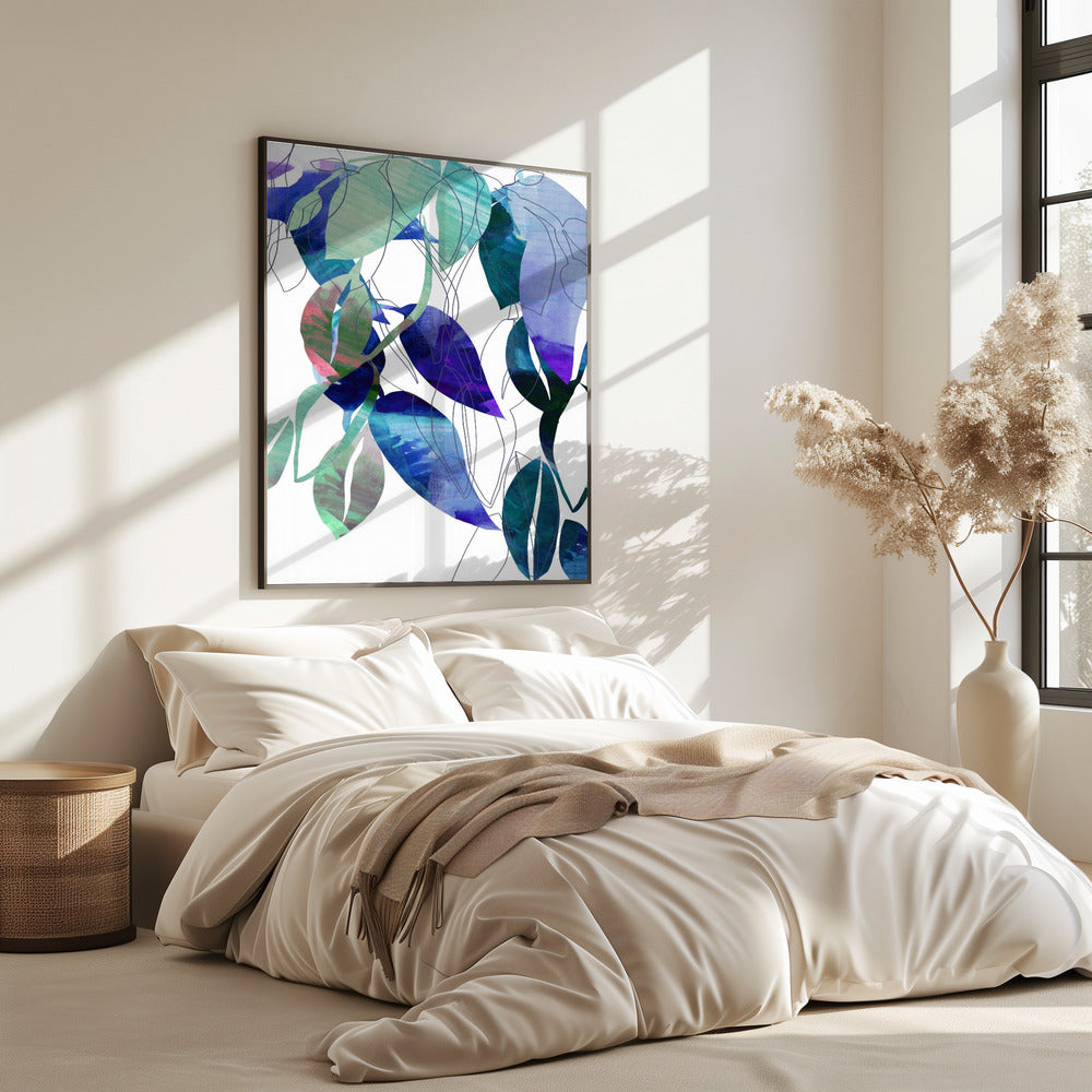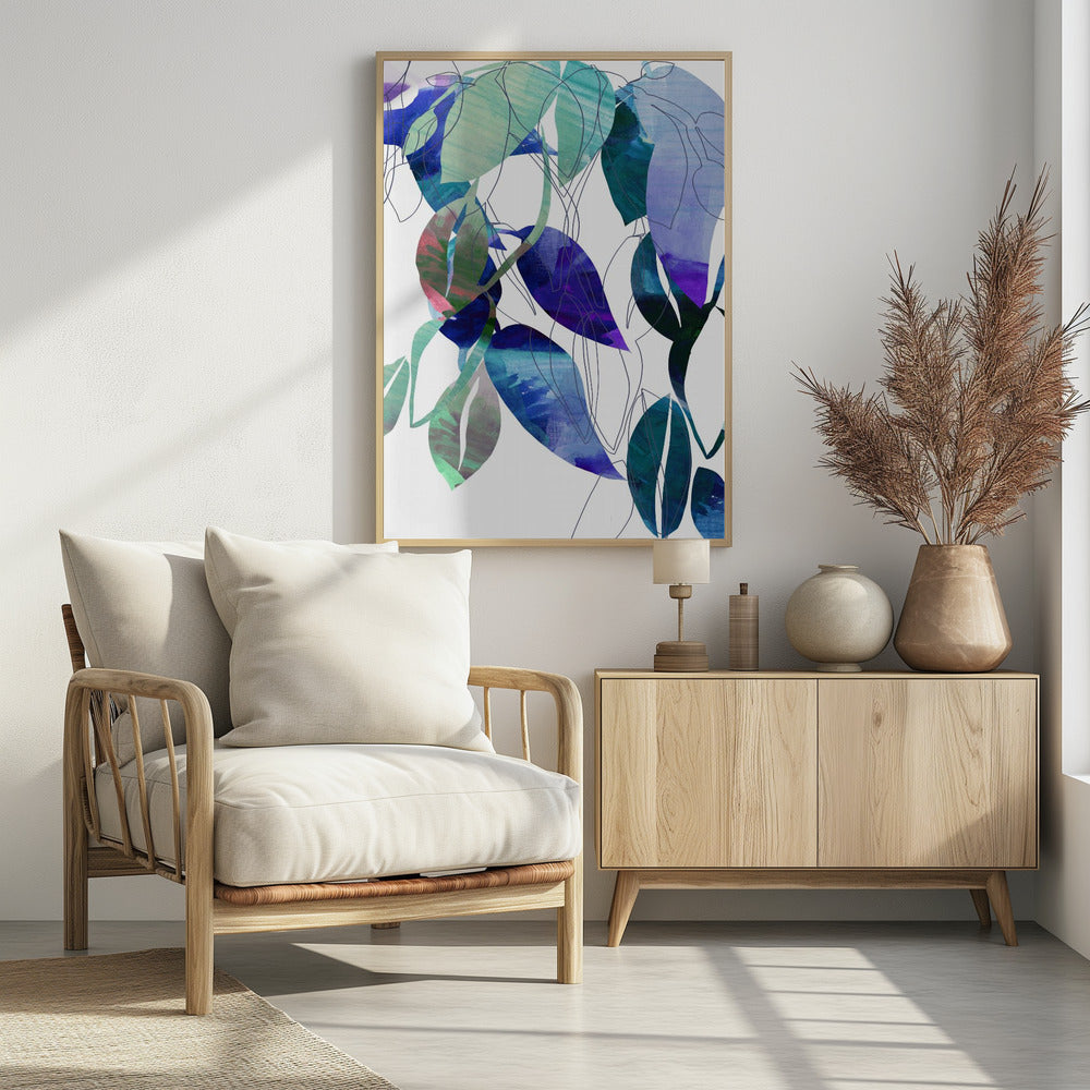 Botanische Blattdruckkunst in Marineblau 3 | Poster