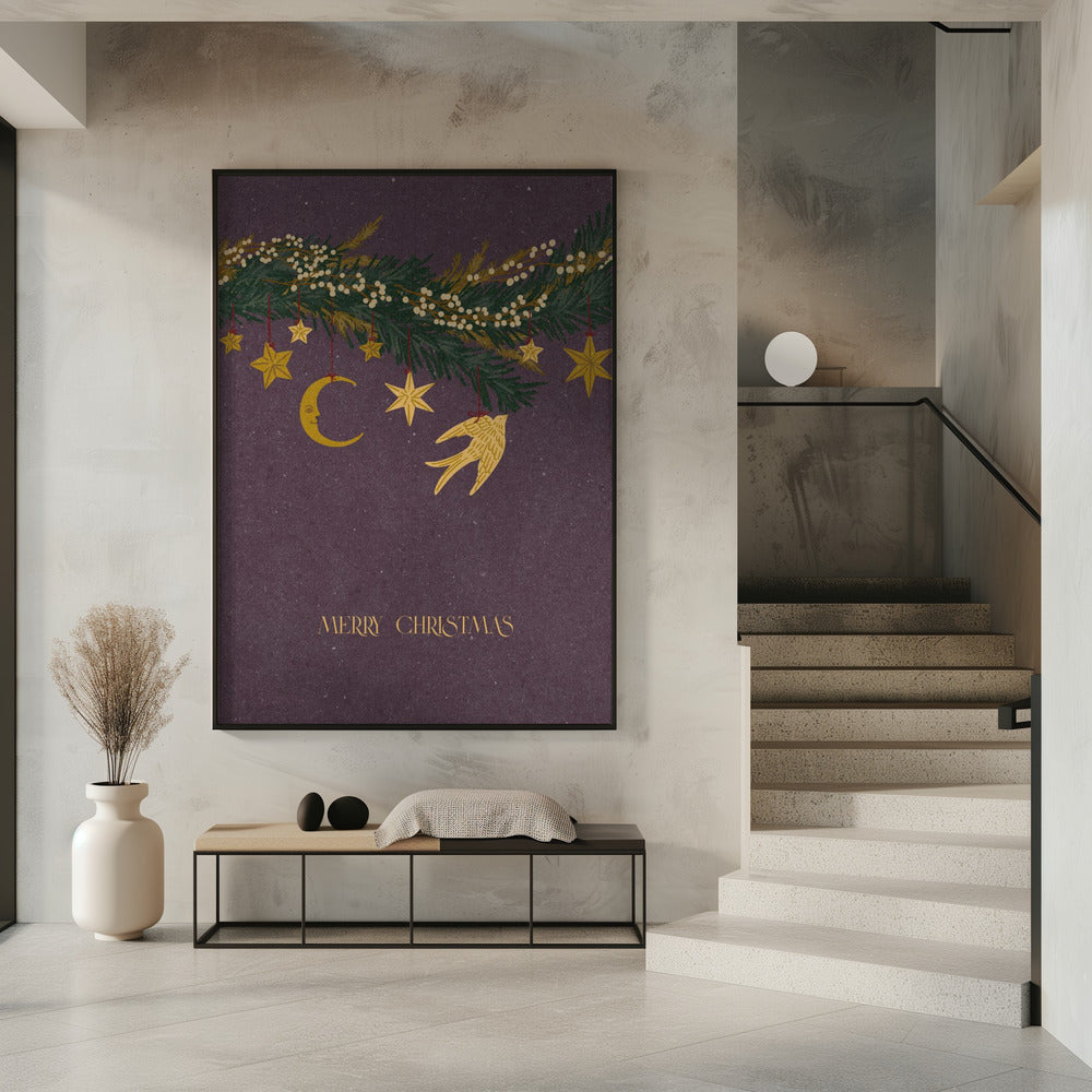 Weihnachts-Vintage-Spielzeug auf Weihnachtsbaumzweigen | Poster