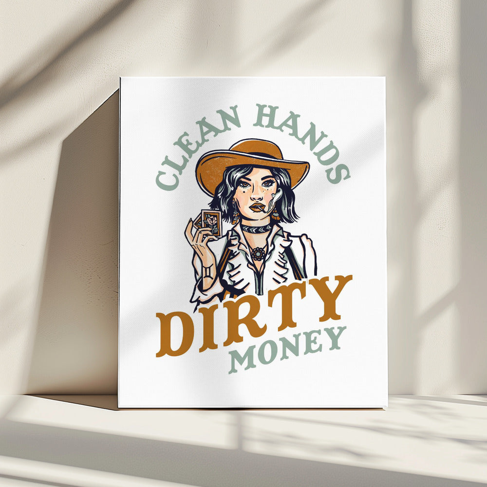 Saubere Hände, schmutziges Geld, Poker, Cowgirl | Leinwand