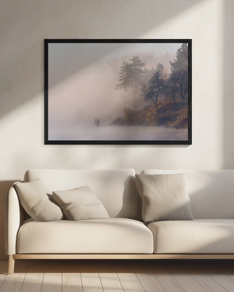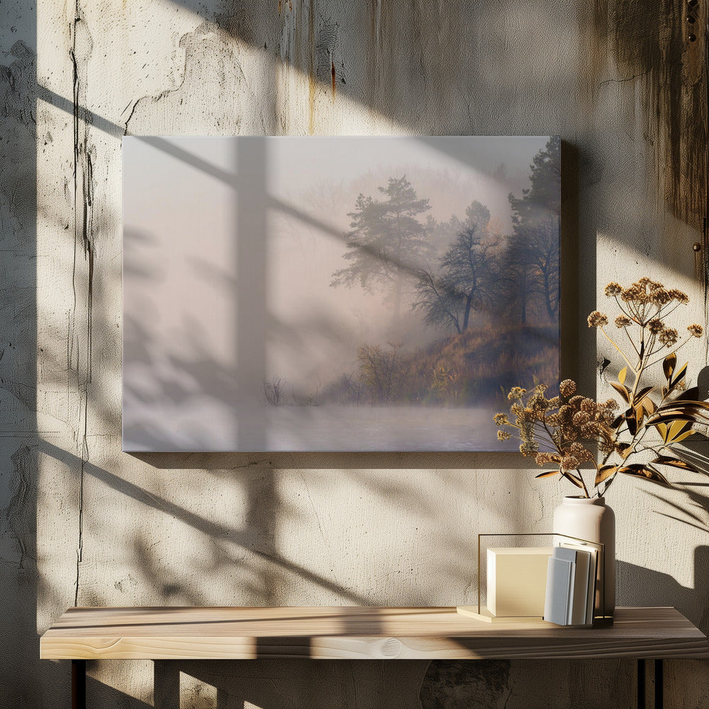 Nebliger Herbstmorgen am Fluss | Leinwand