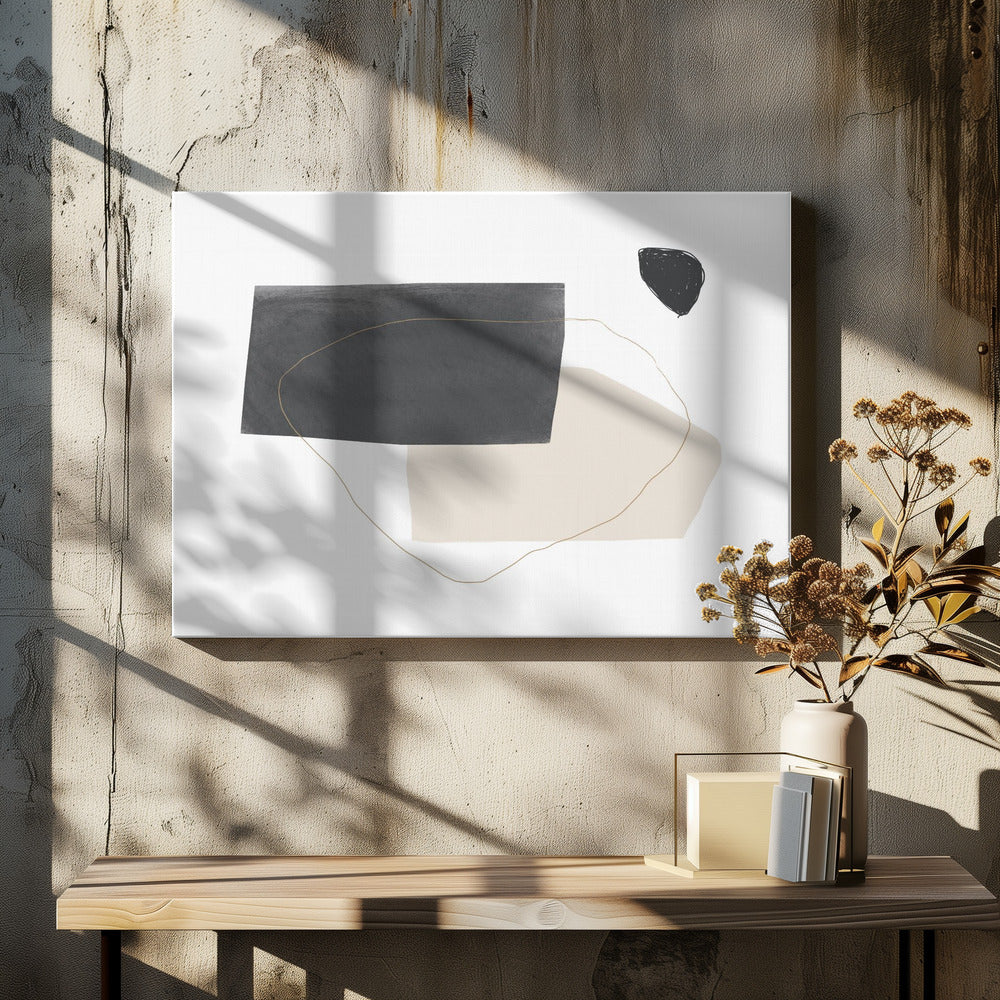 Geometrische Formen in Schwarz, Grau und Beige | Leinwand