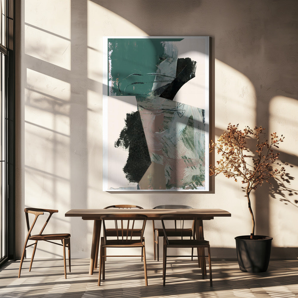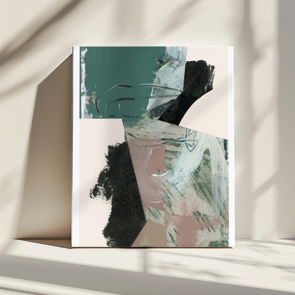 Grün Pfirsich Neutral Schwarz Abstrakt 1 | Leinwand