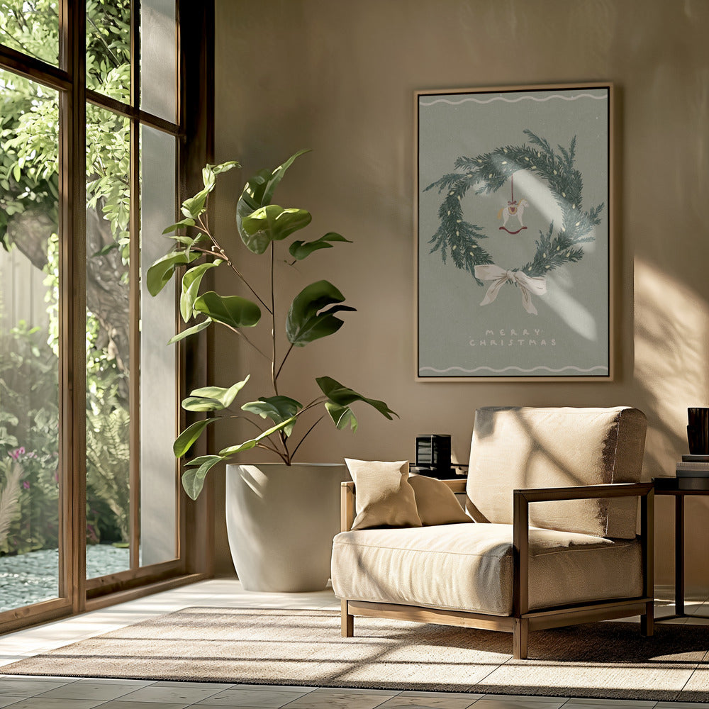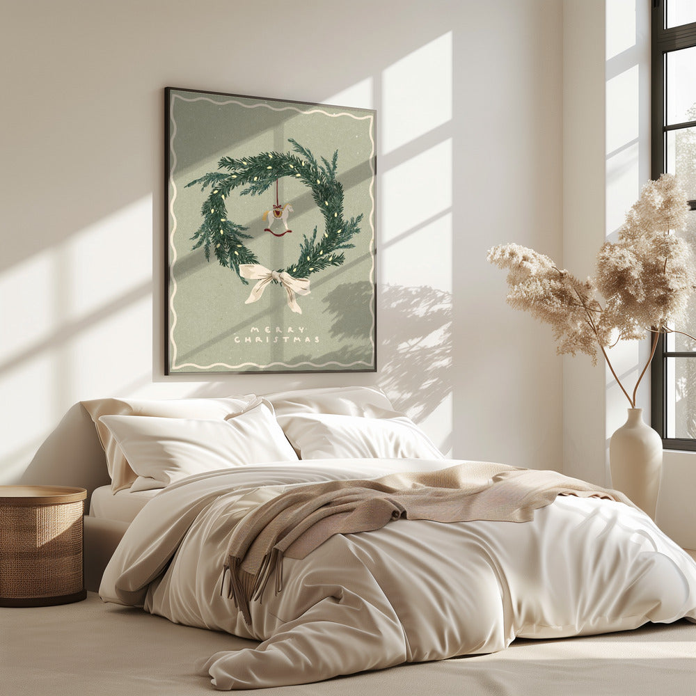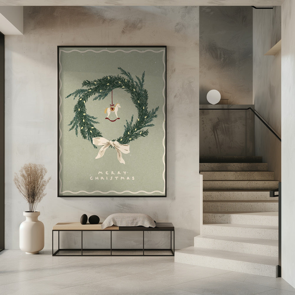 Pferdespielzeug auf Weihnachtskranz mit Schleife | Poster