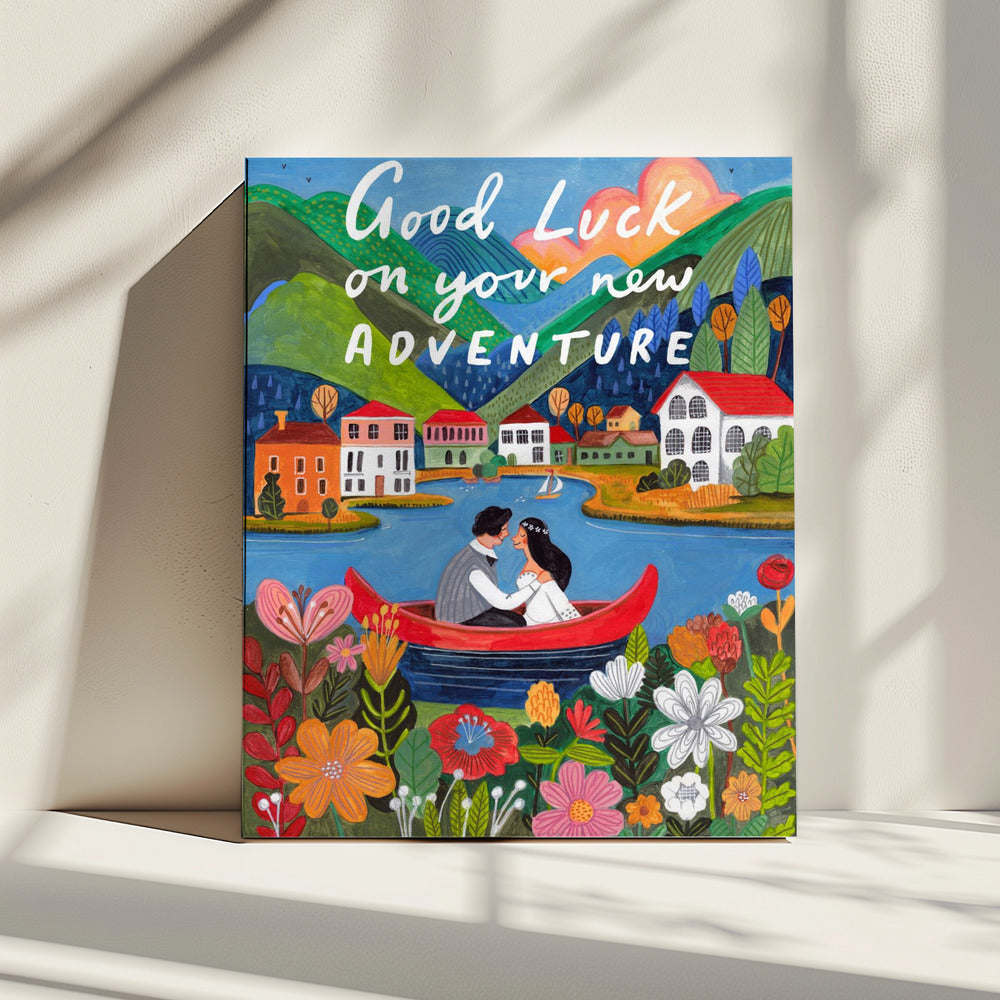 Frisch verheiratetes Paar in einem Boot | Leinwand